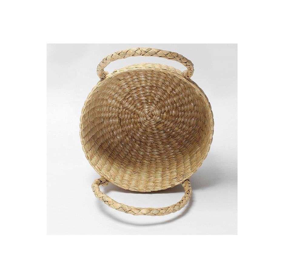 ตะกร้าหวายไม้ไผ่พร้อมหูจับสำหรับจัดเก็บของตกแต่งบ้านสุดสร้างสรรค์