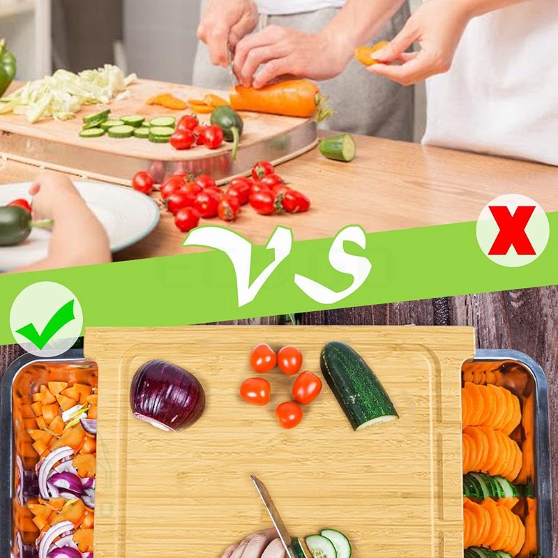 Bamboo Serving Cutting Board for Kitchen Chopping Block Set with 2 Stainless Steel Drip Trays
