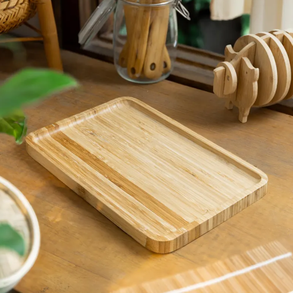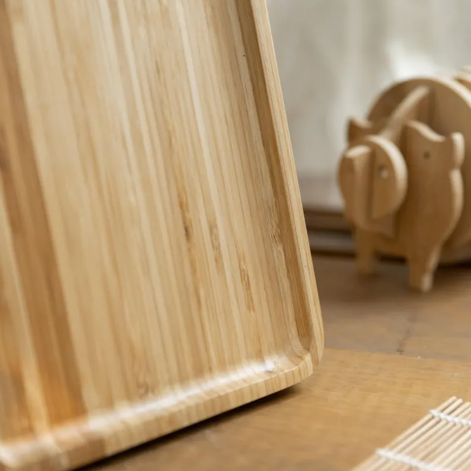 ถาดเสิร์ฟไม้ไผ่แบบใช้แล้วทิ้ง ดีไซน์หรูหรา ทำด้วยมือ ทนทาน เป็นมิตรต่อสิ่งแวดล้อม ปลอดภัยสำหรับเครื่องล้างจาน