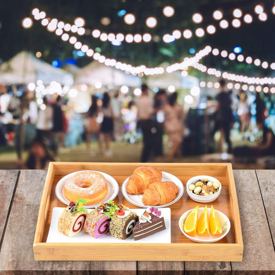 ถาดเสิร์ฟไม้ไผ่พร้อมหูจับ ถาดอาหารสำหรับรับประทานอาหารค่ำ ถาดสำหรับรับประทานอาหารบนโต๊ะ ถาดไม้สำหรับเสิร์ฟอาหารเช้า