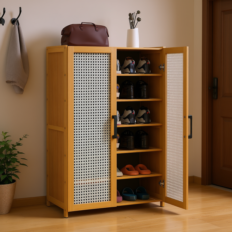 ตู้เก็บรองเท้าไม้ไผ่ 6 ชั้น แบบตั้งพื้น ตู้เก็บรองเท้าแบบมีช่องระบายอากาศ สำหรับทางเดิน ดีไซน์ทันสมัยเรียบง่าย