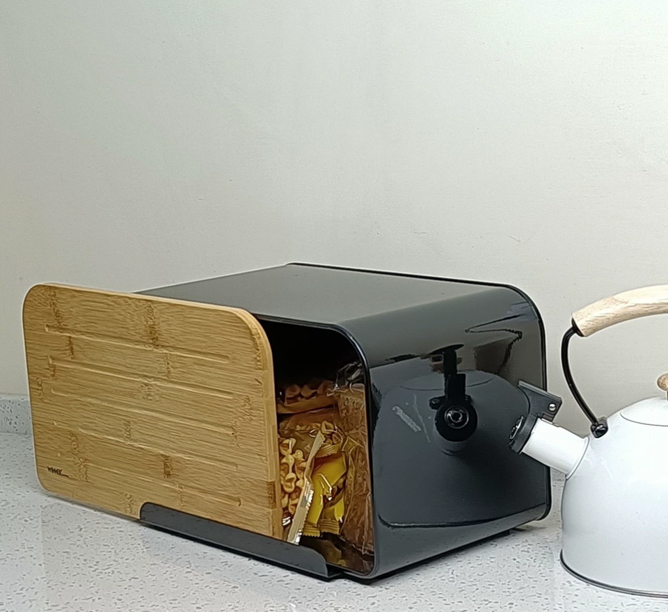 กล่องใส่ขนมปังแบบเลื่อนทำจากไม้ไผ่, กล่องเก็บขนมปังโลหะ, กล่องใส่ขนมปังบนเคาน์เตอร์ครัว, กล่องใส่ขนมปังกันฝุ่นขายส่ง
