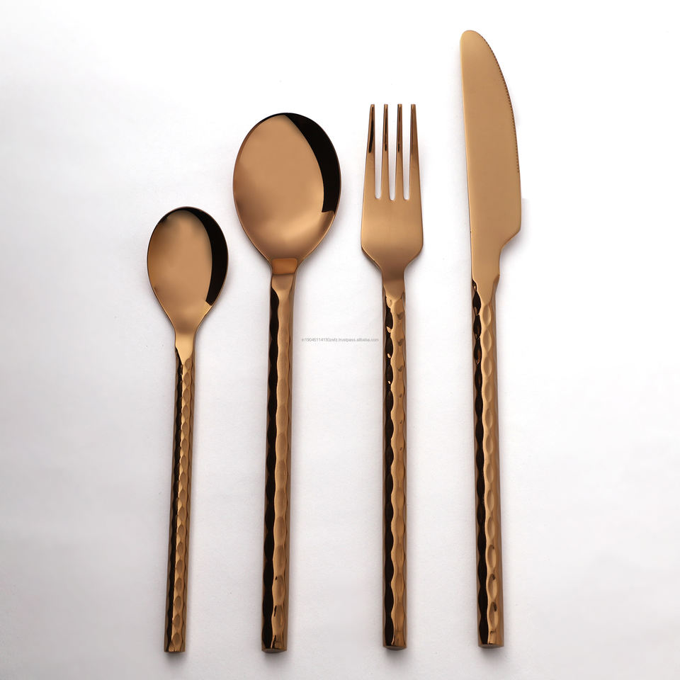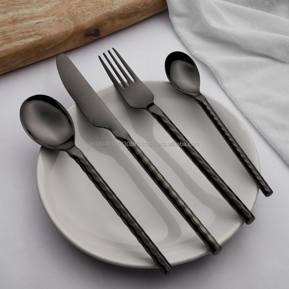 Bamboo Stainless Steel Cutlery Set Gift Box Wedding Cutlery Set Hammer Designs Spoon Fork and Knife Trending Flatware Set India