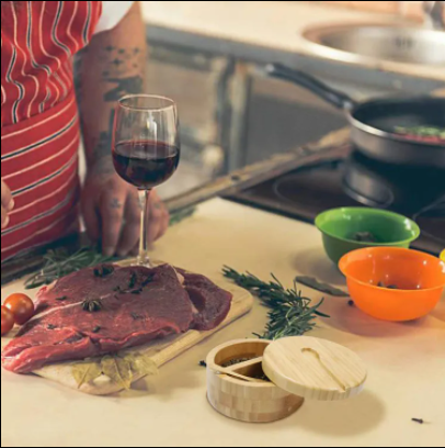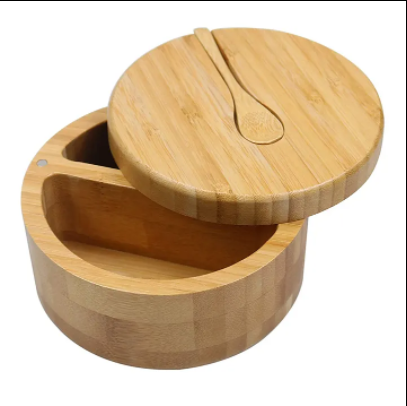 กล่องไม้ไผ่ใส่เกลือพริกไทยและเกลือใส่เกลือที่เก็บเกลือพร้อมฝาแม่เหล็กสำหรับเก็บกล่องเกลือไม้แห้ง