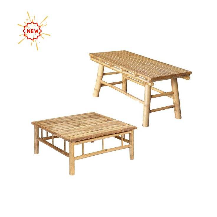 โต๊ะและเก้าอี้ไม้ไผ่ธรรมชาติออกแบบแบบดั้งเดิมสำหรับตกแต่งบ้านในร่มและกลางแจ้งสำหรับห้องนั่งเล่นห้องครัวสวนเฟอร์นิเจอร์