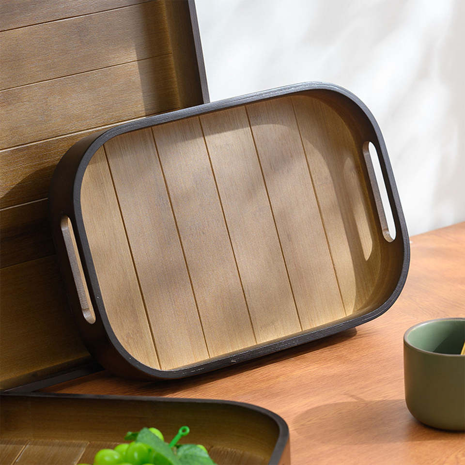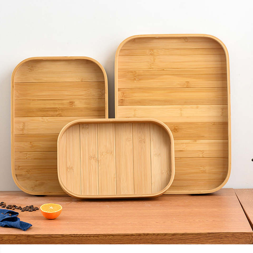 ถาดไม้ไผ่ทรงสี่เหลี่ยมผืนผ้าถาดชาสำหรับใช้ในบ้านชาถาดไม้บาร์บีคิวสำหรับร้านอาหารโรงแรม