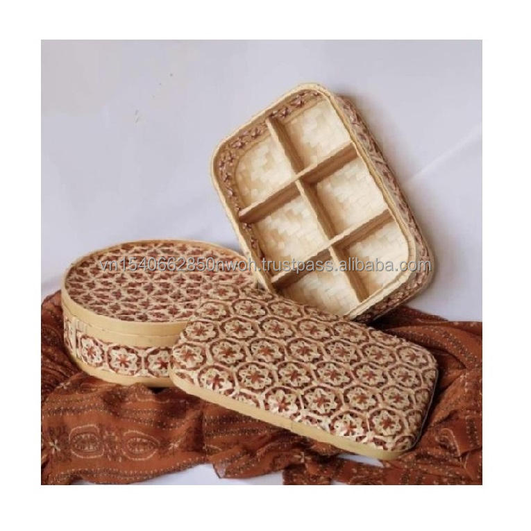 กล่องไม้ไผ่สานของขวัญทรงกลมสาน,กล่องบรรจุภัณฑ์ไม้ไผ่กล่องของขวัญสำหรับเค้กดวงจันทร์
