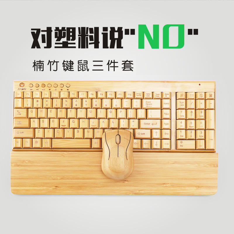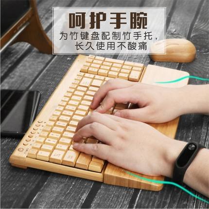 ชุดเมาส์คีย์บอร์ดไร้สายไม้ไผ่ KG201 9 คอมโบของขวัญป้องกันมือขนาดเล็กบางเฉียบใช้งานได้จริง