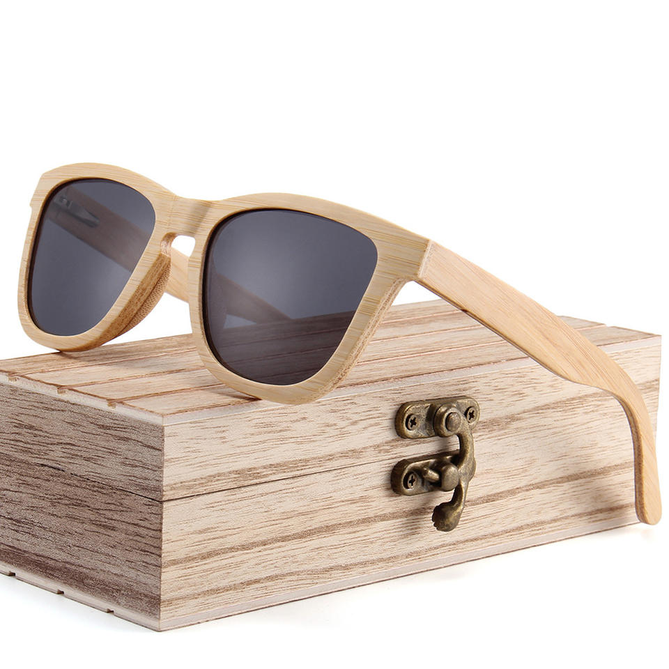 C1 กรอบไม้ไผ่แท้สีธรรมชาติ เลนส์โพลาไรซ์ฟิล์มสีเทาเต็มรูปแบบ