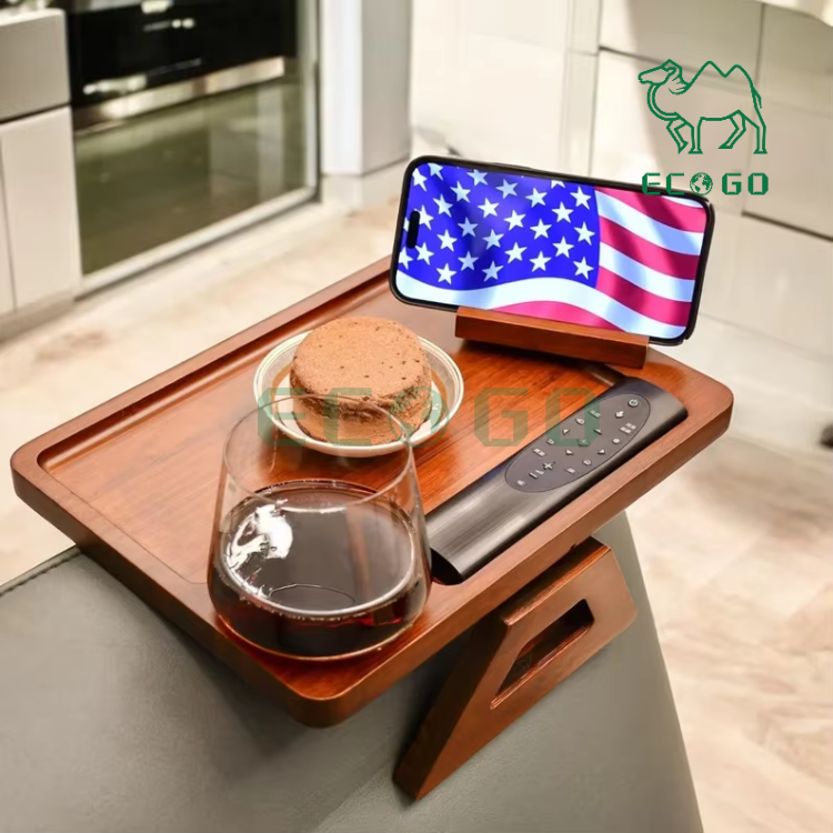 ที่วางแขนบนโซฟาทำจากไม้ไผ่พร้อมถาดพับได้สำหรับใช้ในบ้าน