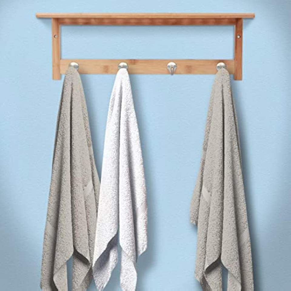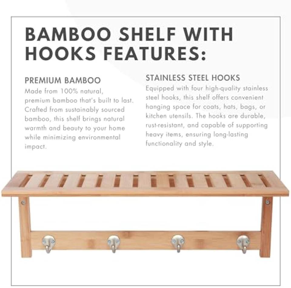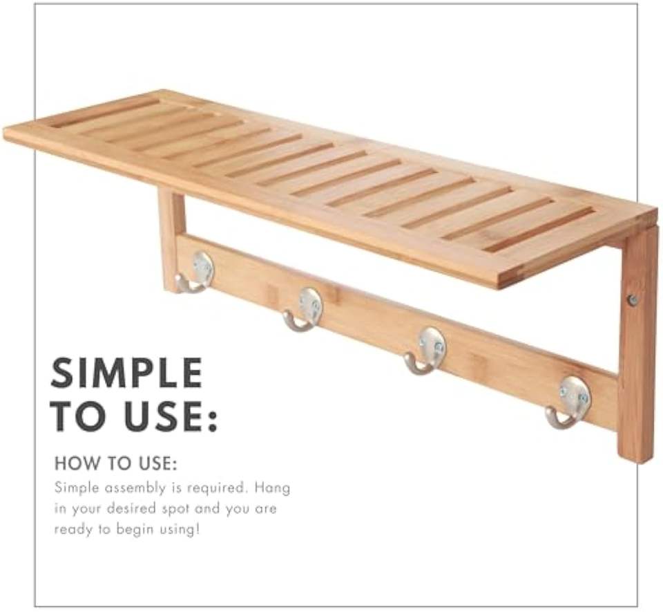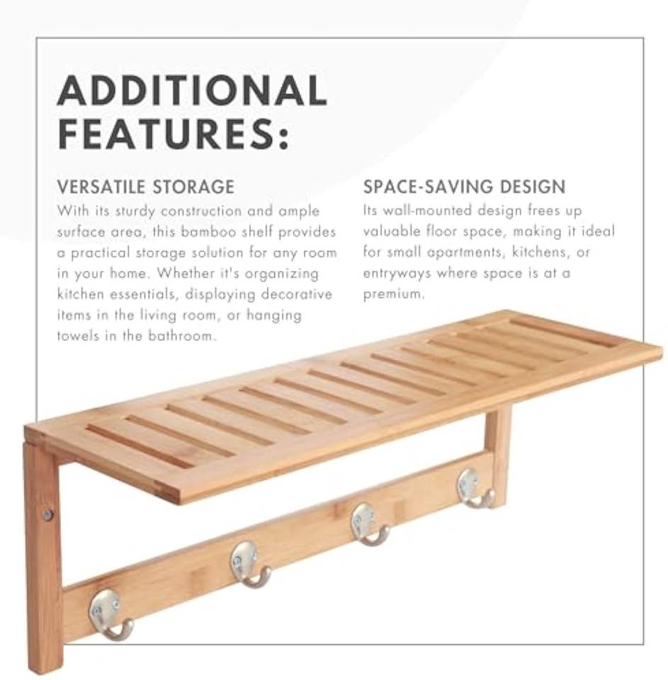 ชื่อสินค้า:ชั้นวางของไม้ไผ่ธรรมชาติ พร้อมตะขอสแตนเลส 4 ตัว สำหรับแขวนผนัง