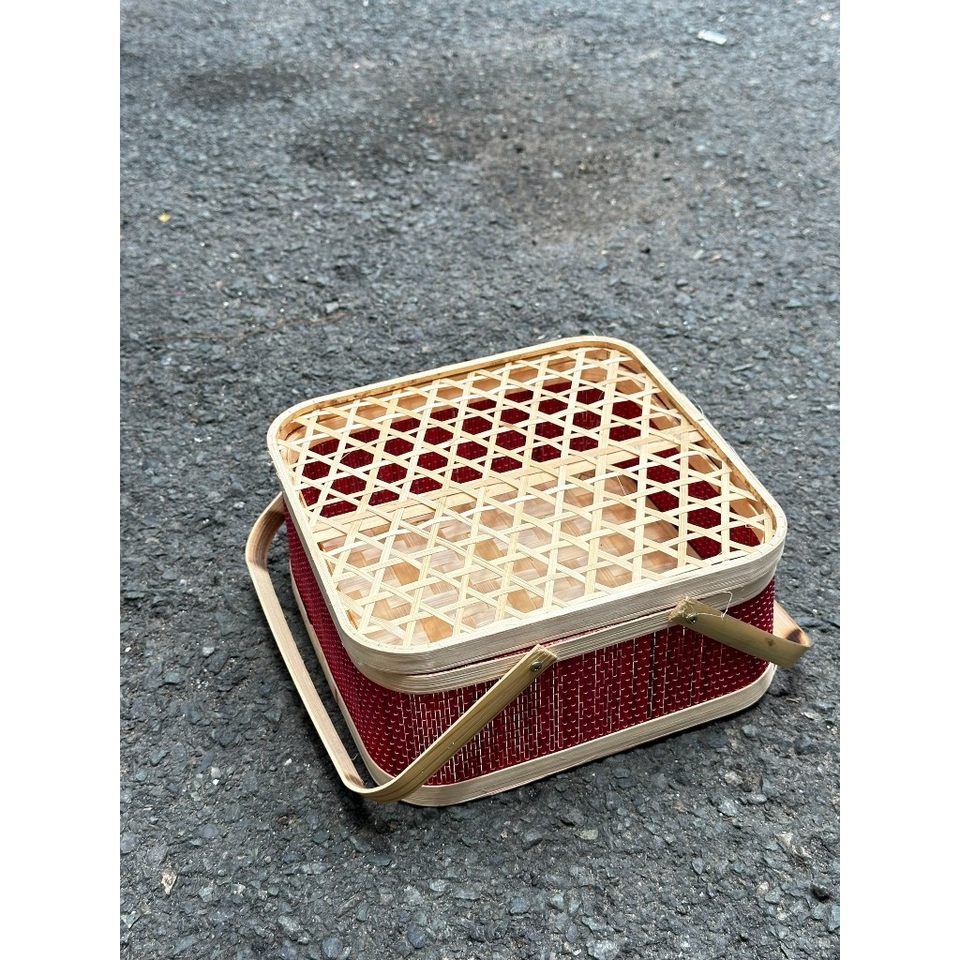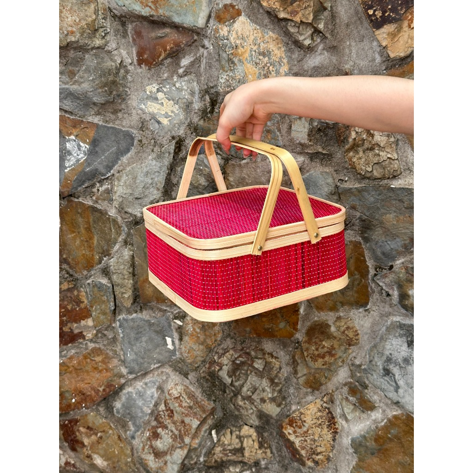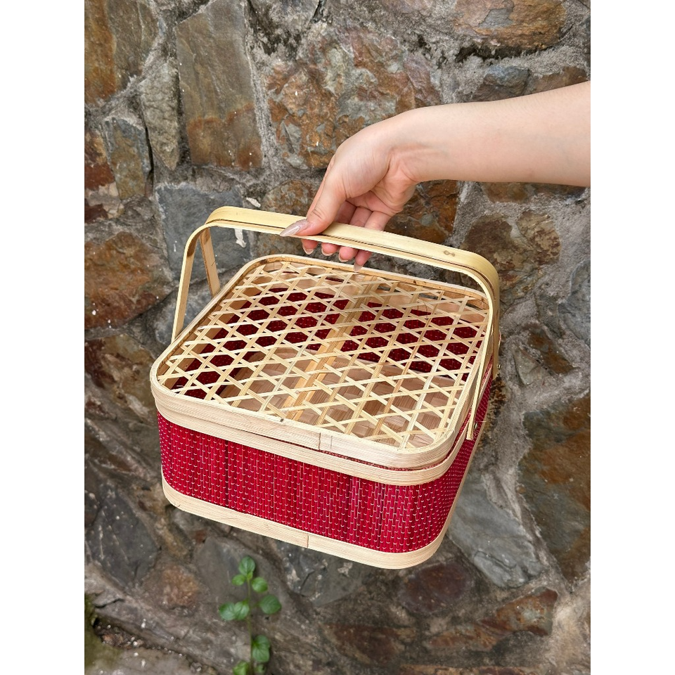 ชื่อผลิตภัณฑ์:กล่องของขวัญไม้ไผ่สานพร้อมฝาปิด