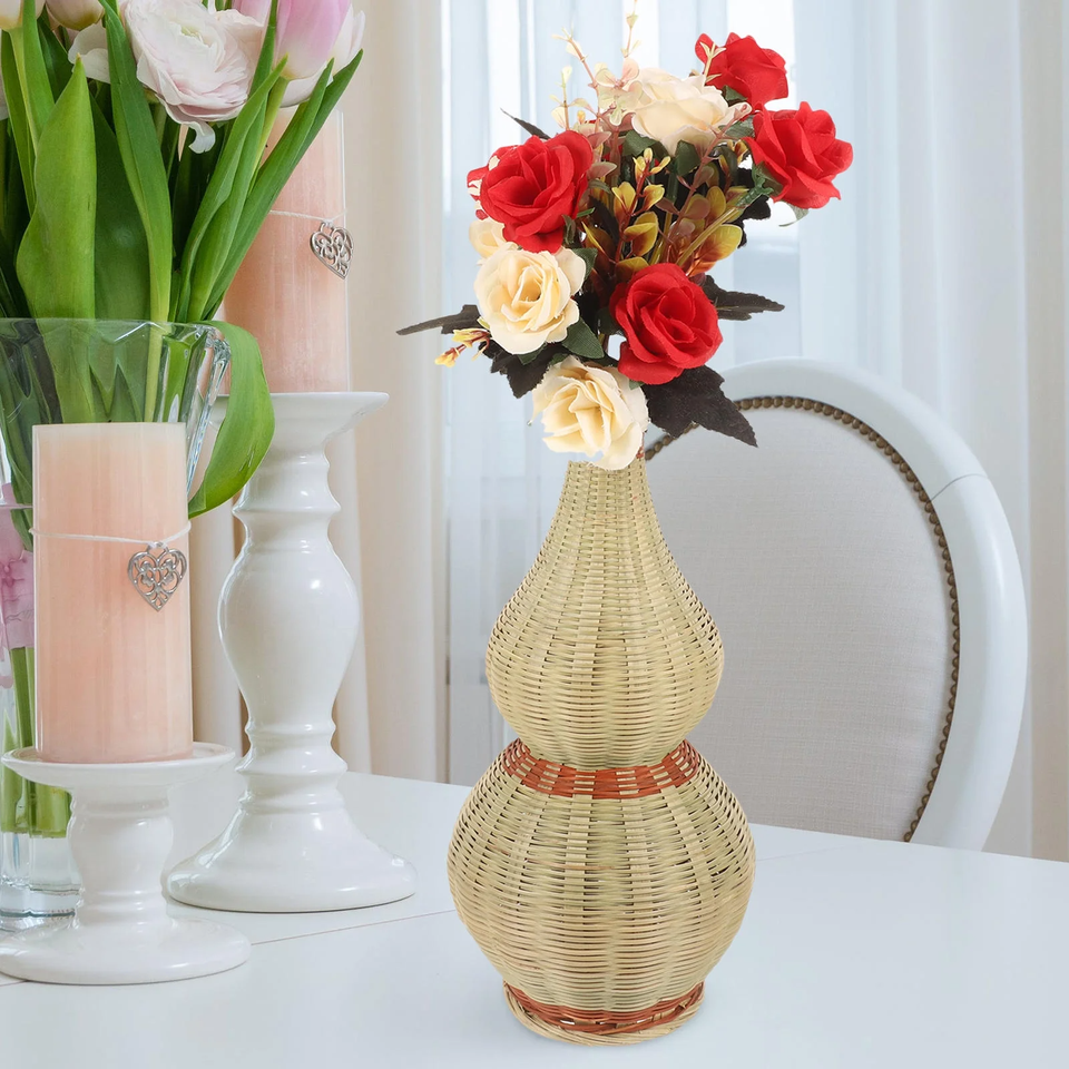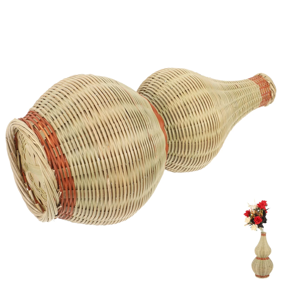 ขนาด: D4 7 x H11 8นิ้ว:แจกันไม้ไผ่สานสำหรับตกแต่งตามธรรมชาติการจัดดอกไม้ที่หรูหรา