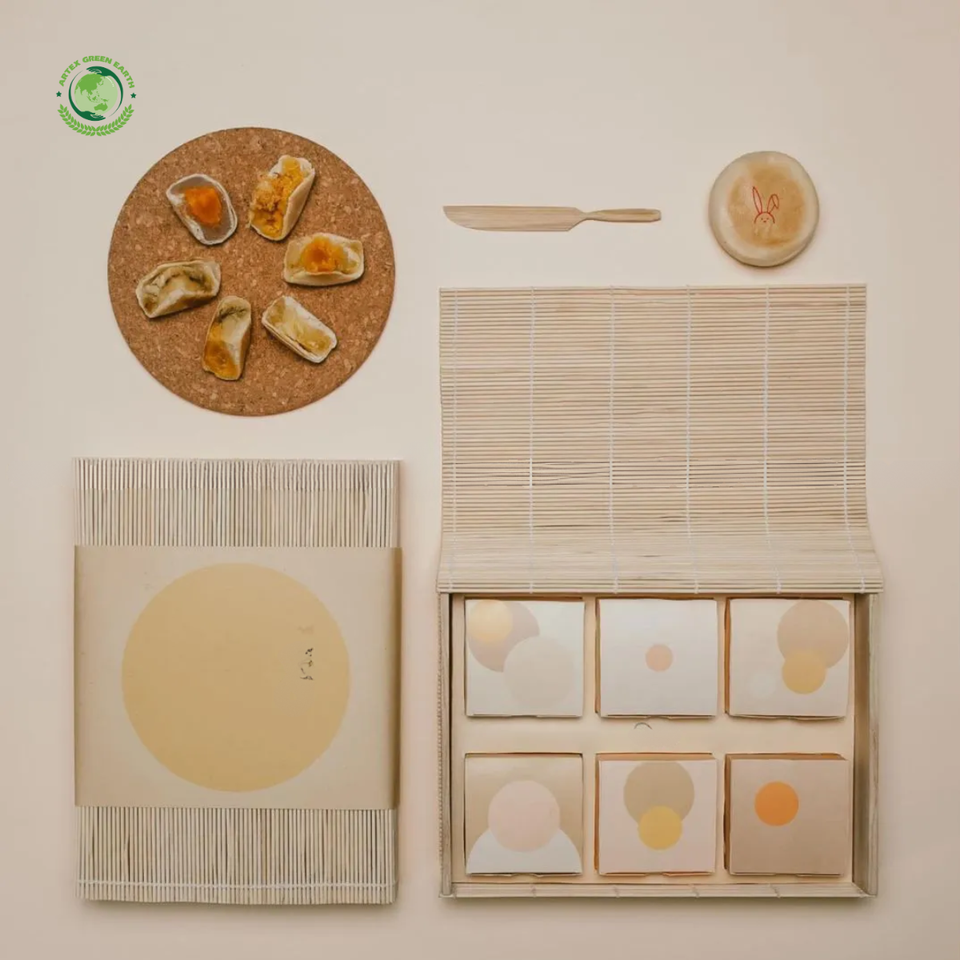 กล่องของขวัญไม้ไผ่แบบกล่องสุ่ม ฝาปิดแบบสาน กล่องของขวัญไม้ไผ่เคลือบธรรมชาติ และบรรจุภัณฑ์สำหรับจัดเก็บ สินค้าจากเวียดนาม ขายส่ง