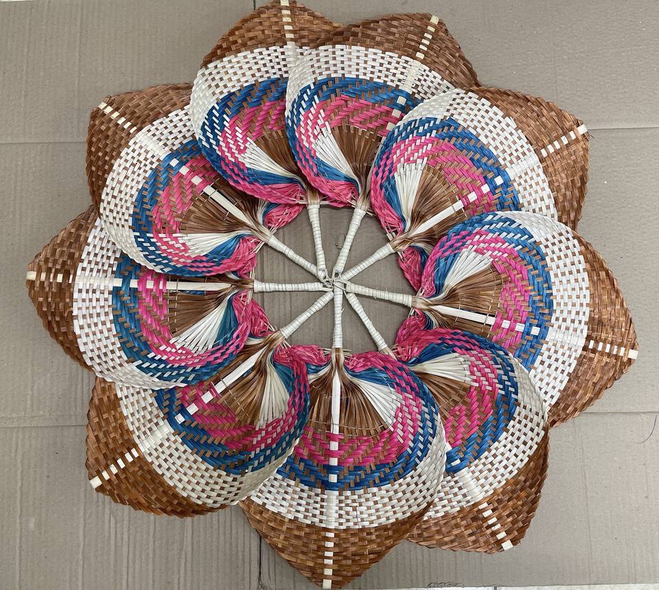 พัดลมมือถือทำจากใยมะพร้าวและไม้ไผ่สำหรับเทศกาลแฮนด์เมดสไตล์เวียดนาม