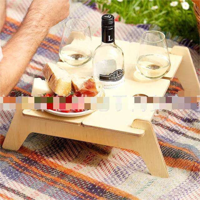 โต๊ะไม้ไผ่แบบพกพาสำหรับปิกนิกไวน์พร้อมจานเตียงพับได้สำหรับทำอาหารจานชีสชายหาดตั้งแคมป์