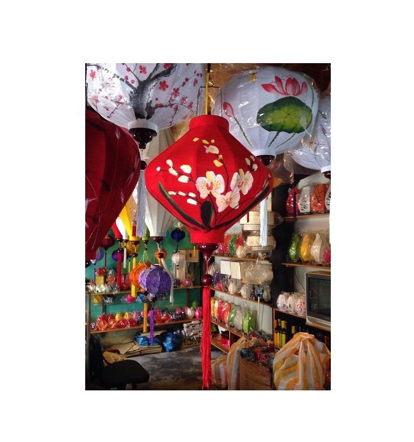 โคมไฟผ้าไหมไม้ไผ่พร้อมผ้าสีสันสดใสสำหรับงานแต่งงานบ้านสวนและใช้ในงานเทศกาล