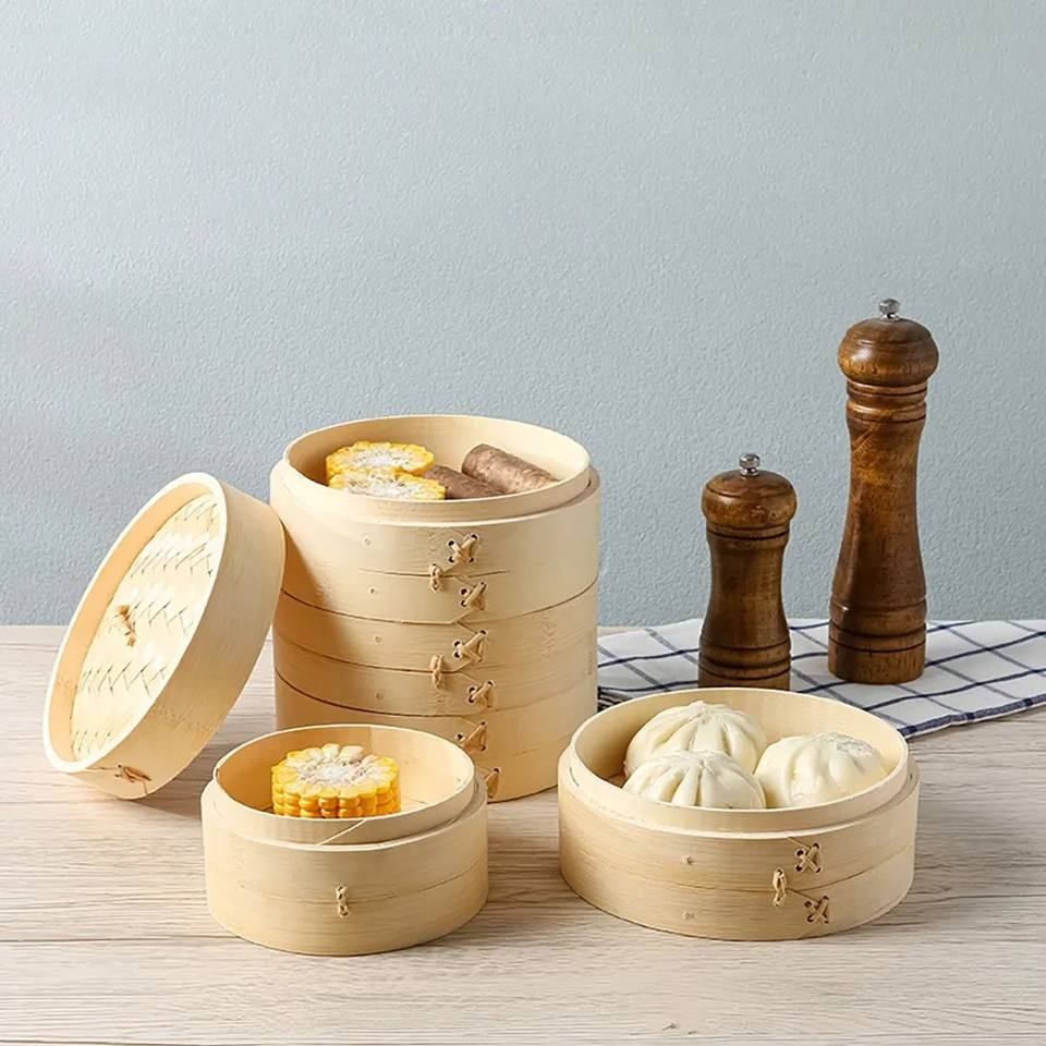 ชุดตะกร้านึ่งอาหารจากไม้ไผ่ชุดตะกร้านึ่งติ่มซำแบบดั้งเดิม