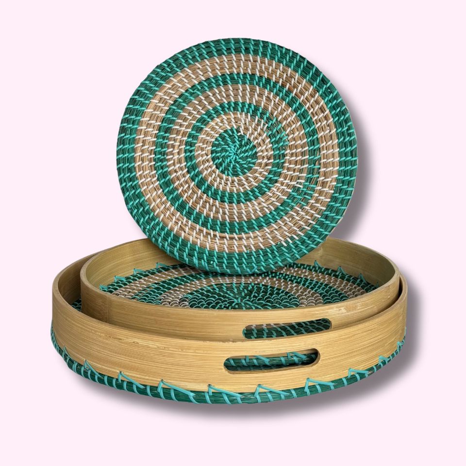 ถาดไม้ไผ่พร้อมหญ้าทะเลชุดตกแต่งโต๊ะอาหาร3รอบวัสดุธรรมชาติทำจากเวียดนามขายส่ง