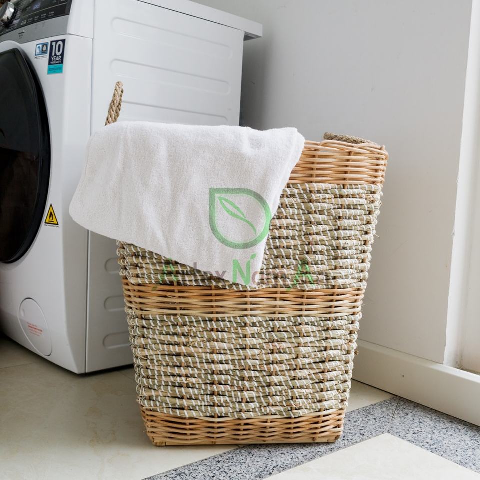 ตะกร้าสานใบกล้วยหวายขนาดใหญ่แบบสานสำหรับใส่ของในบ้านผ้าห่มของเล่นสำหรับซักผ้ากล่องใส่ของสไตล์ประจำวัน