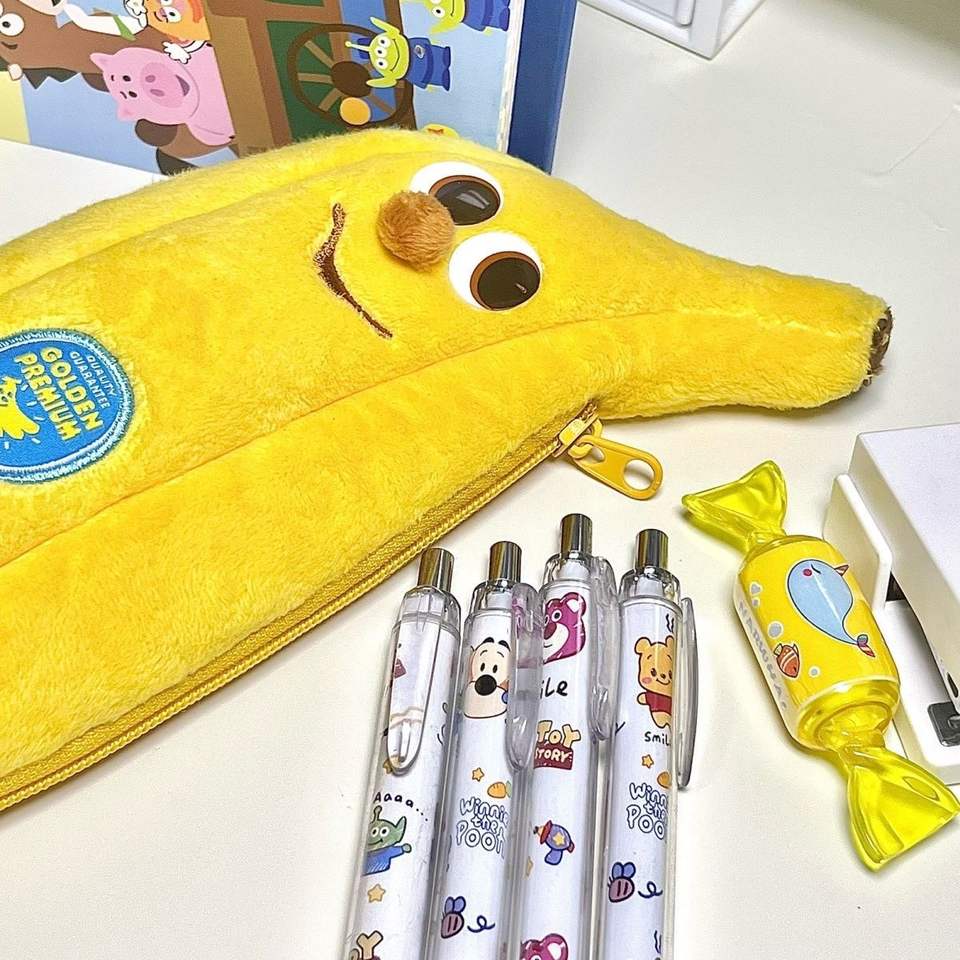 กระเป๋าใส่ดินสอขนาดใหญ่ลายกล้วย กระเป๋าเก็บเครื่องเขียนสุดสร้างสรรค์ ทำจากผ้าฝ้าย บุด้วยใยฝ้าย PP น่ารัก นุ่มฟู ใช้ได้กับเครื่องสำอาง