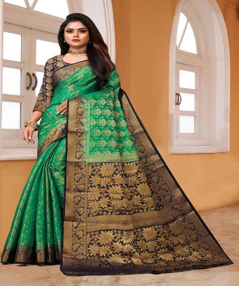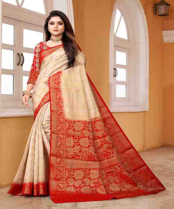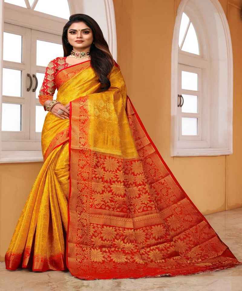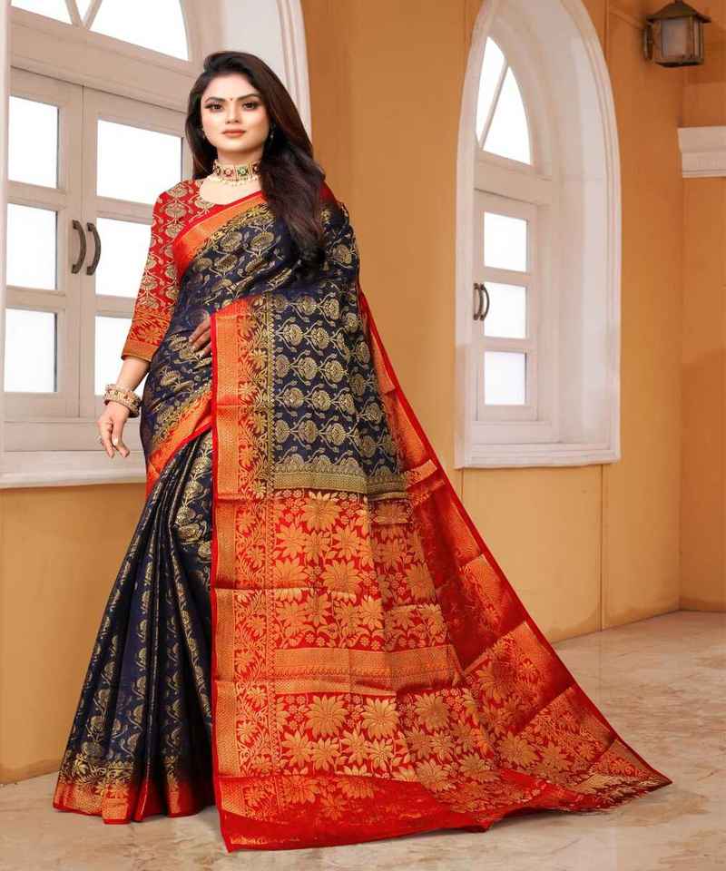 Banarasi ชุดส่าหรีผ้าไหมเนื้อนุ่มสำหรับผู้หญิงผ้าส่าหรีผ้าแฟนซี