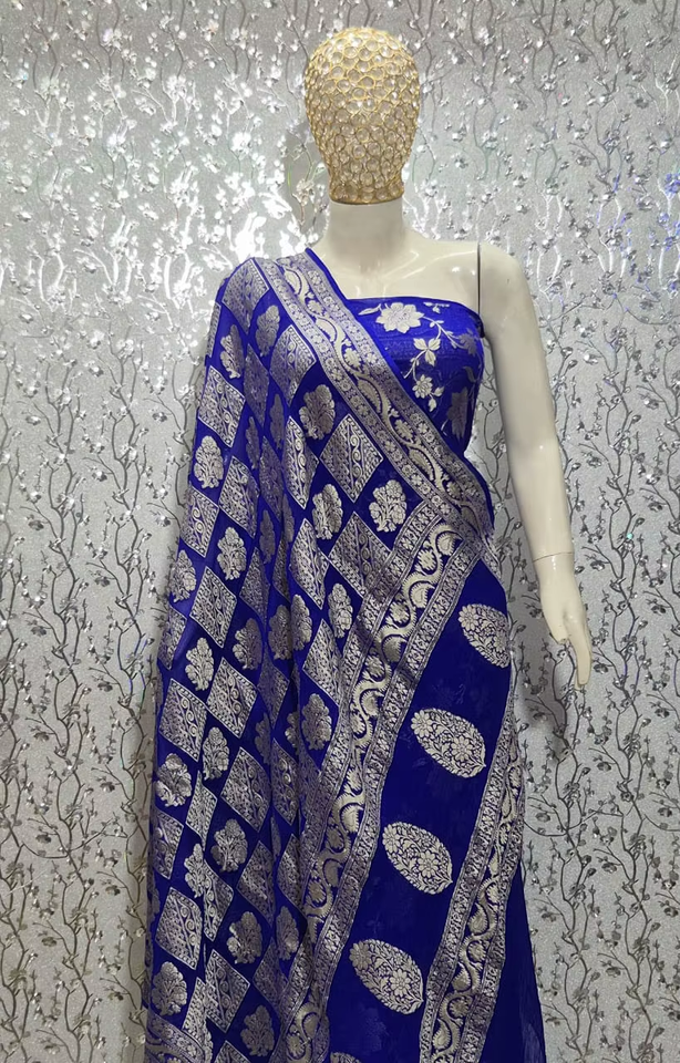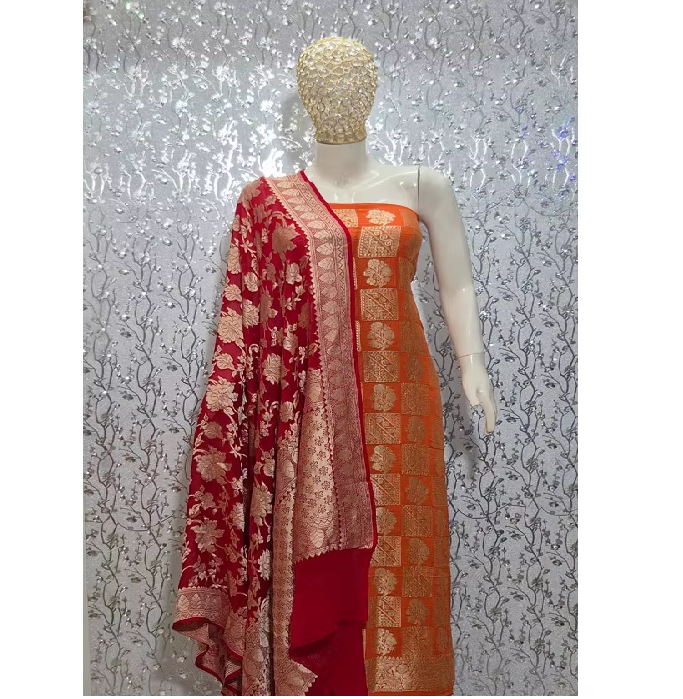 ชุดผ้าไหมกึ่งดูปิออน บาแนรัสี แบบ 3 ชิ้น ไม่เย็บสำเร็จ ลายทอแบบบูติ แจ็คการ์ด สำหรับผู้หญิง ชุดพื้นเมืองสำหรับงานปาร์ตี้ ป้องกันแสงแดด