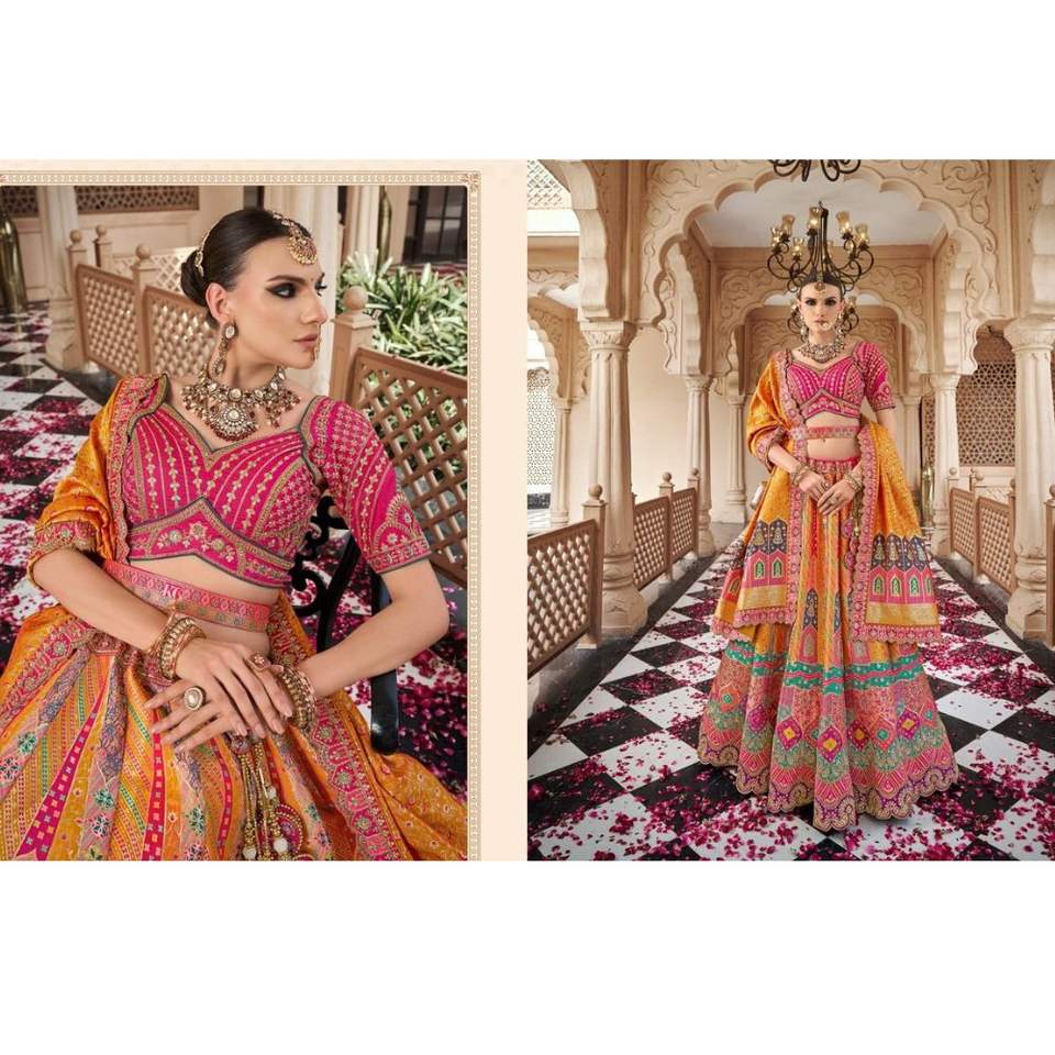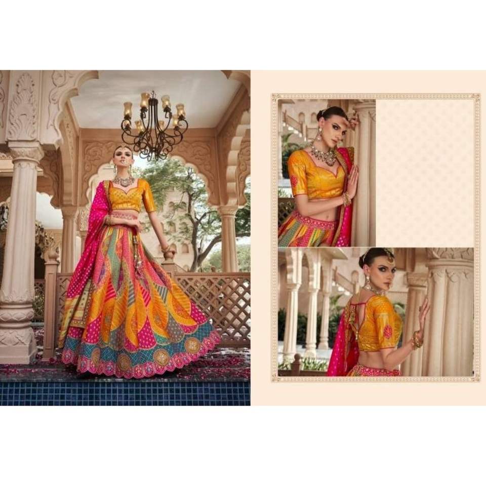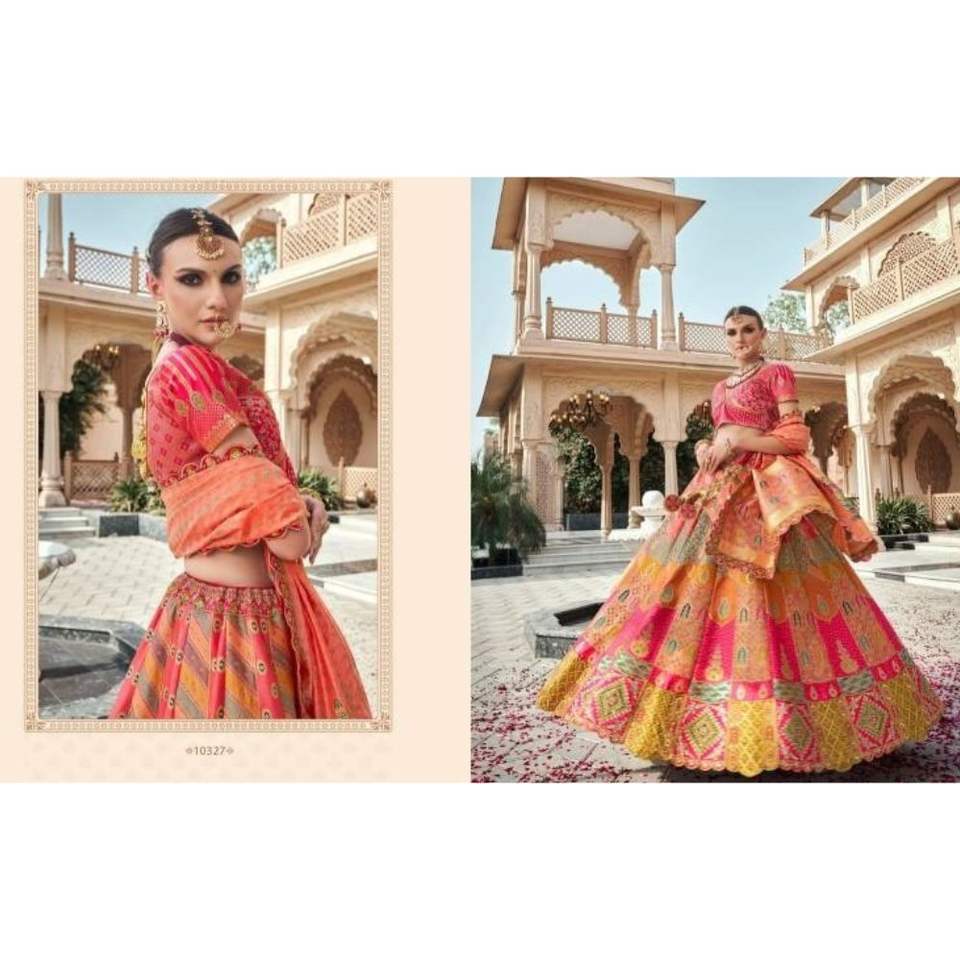 Lehenga choli:ผ้าไหม Banasi แบบพรีเมี่ยมพร้อมคลัทช์ Zarkan และ Cutwork Woth