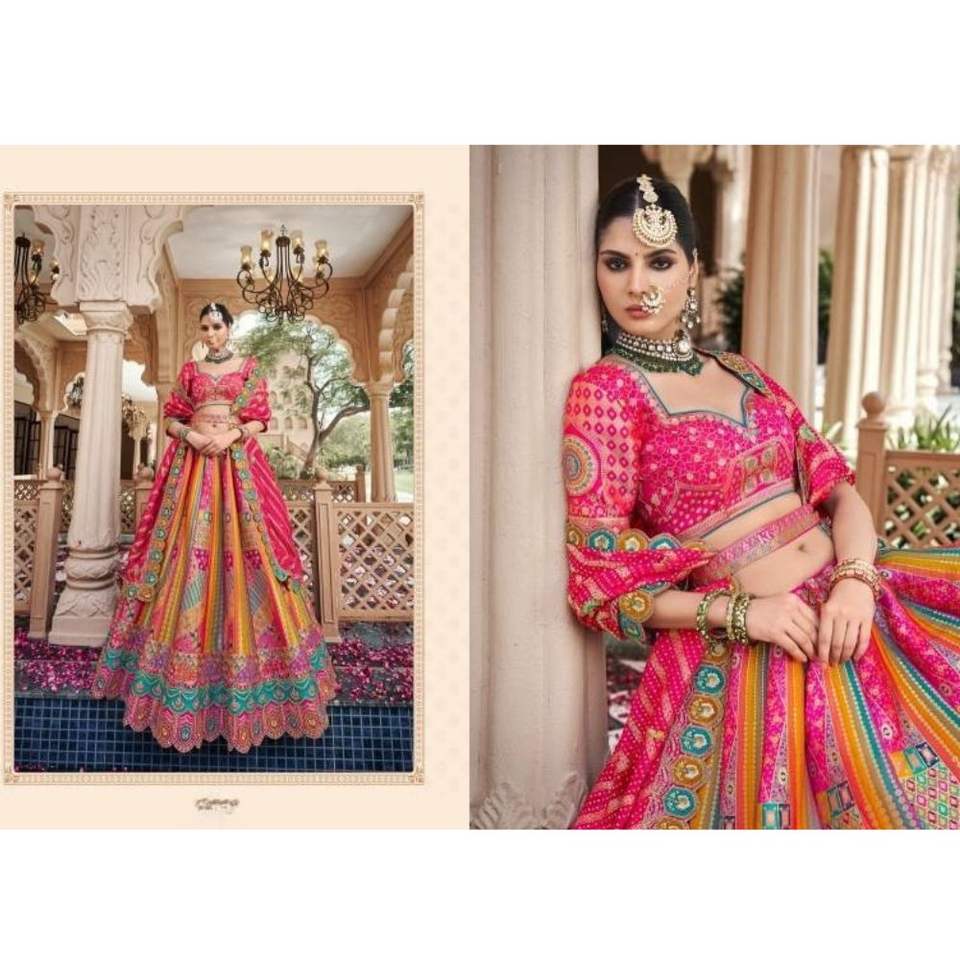 Banarasi ชุดออกงานผ้าไหมชุดเจ้าสาว lehenga choli ยาวถึงพื้นมีรายละเอียดการตัดสายพานลาแคนจับคู่กับคลัทช์