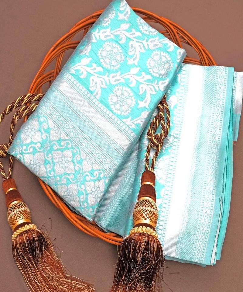 Banarasi เสื้อผู้หญิงผ้าแจ็คการ์ดผ้าแจ็คการ์ด, สำหรับใส่ในงานเลี้ยงใส่ได้ทุกวันผ้าคอตตอนเนื้อนุ่ม5634เอเวอร์กรีน
