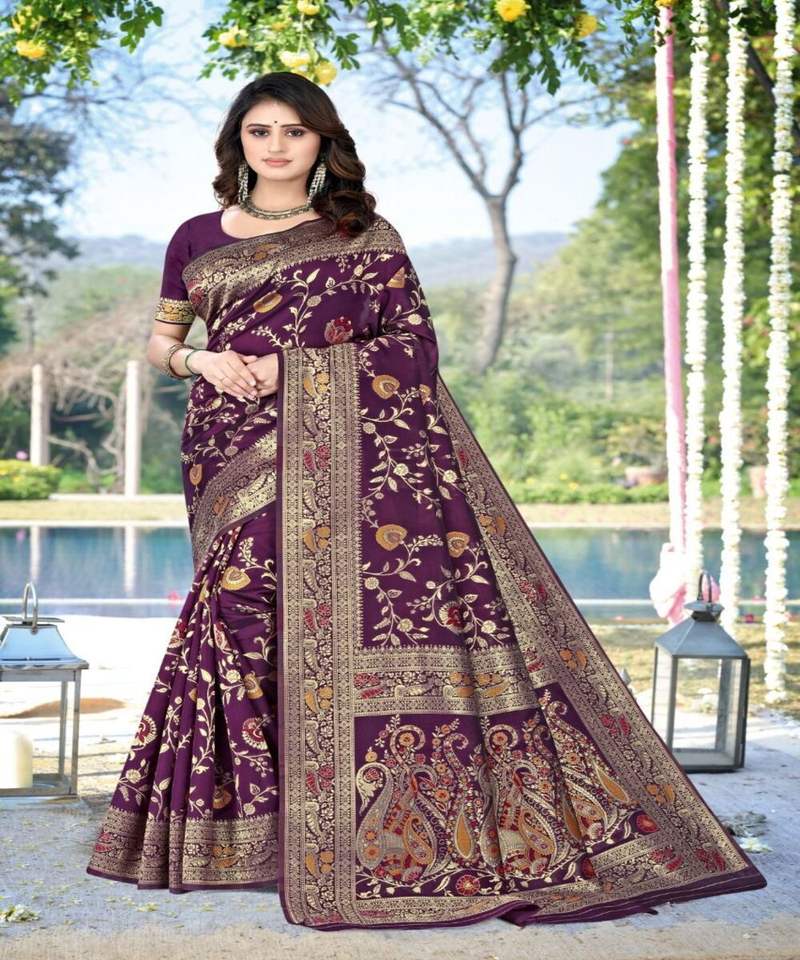 Banarasi เสื้อไหมผ้าแจ็คการ์ดผ้าแจ็คการ์ดสำหรับสตรีใส่ในงานเทศกาลปาร์ตี้ทุกวันผ้าส่าหรีเนื้อผ้านุ่ม