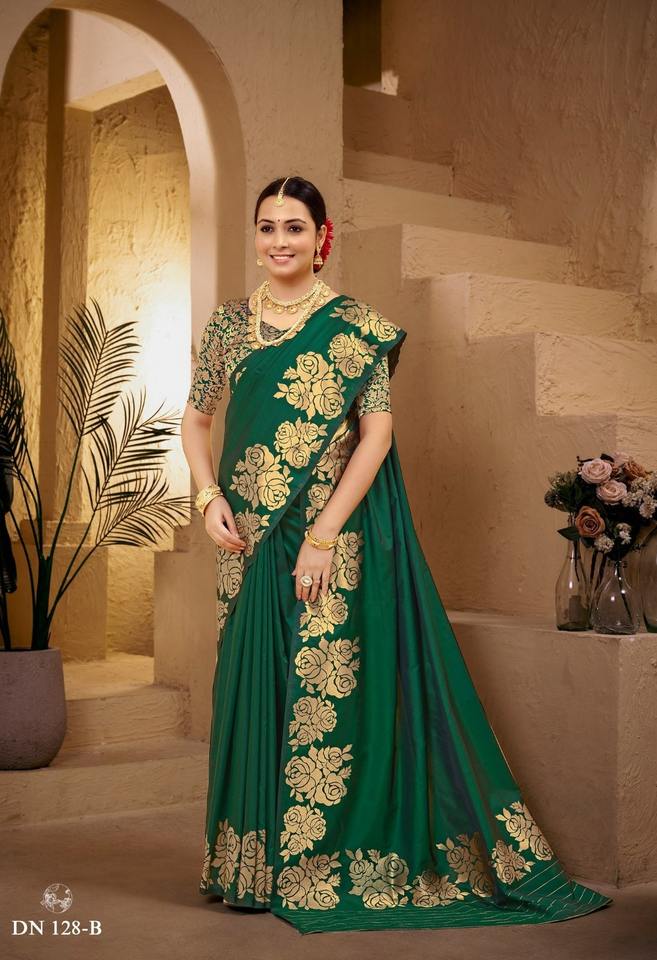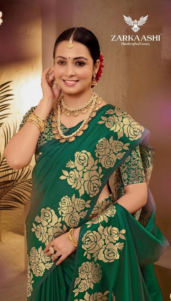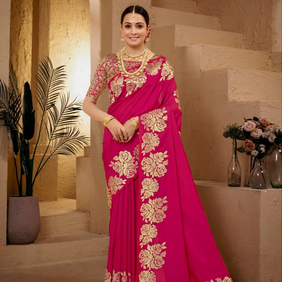 ผ้าไหมบาเนราสีพร้อมลายกุหลาบสวยงามที่ถักทออย่างประณีตทั้งขอบและพัลลู สำหรับงานแต่งงาน ราคาขายส่ง