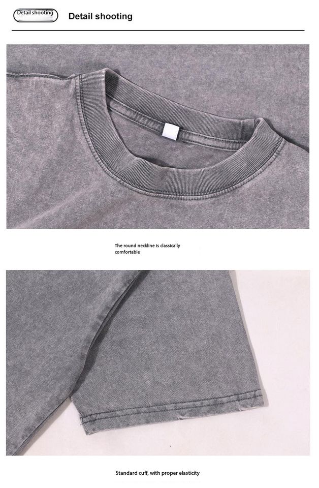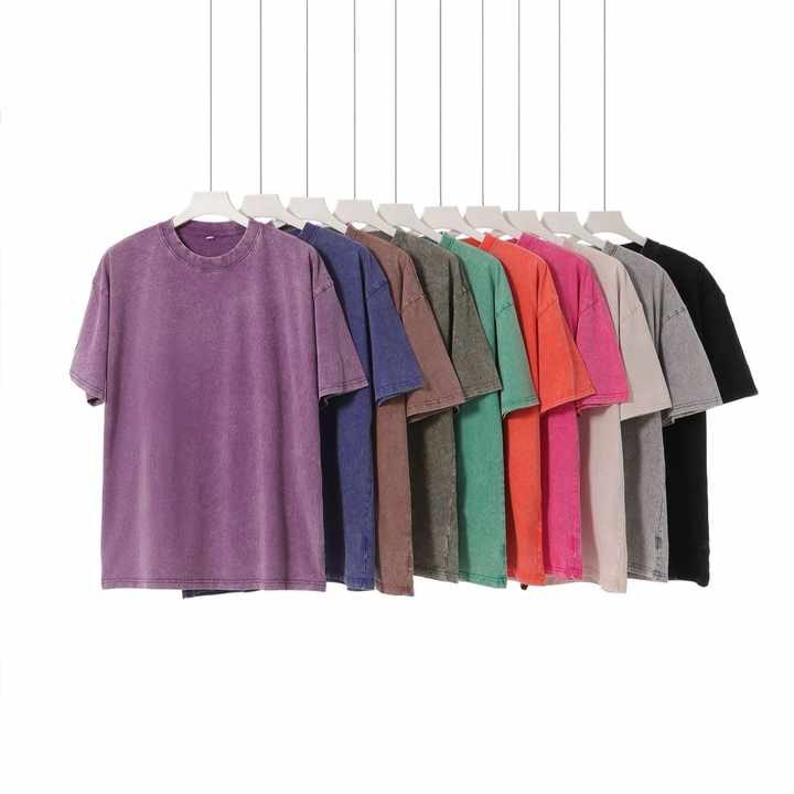เสื้อยืดบาติกแบบซัก 230 กรัม ราคาโรงงานจากบังกลาเทศและจีน สไตล์เรโทรอเมริกัน เสื้อยืดทรงหลวม ไหล่ตก คอกลม