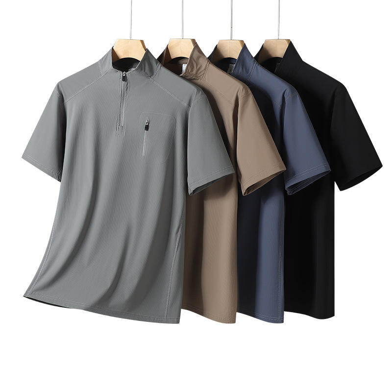 เสื้อโปโลสีพื้น คอตั้ง แขนสั้น ซิปครึ่งตัว สไตล์ลำลอง ปักโลโก้ตามสั่ง ราคาโรงงานจากบังกลาเทศและจีน