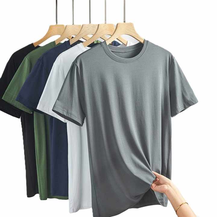 เสื้อยืดผู้ชายแขนสั้นผ้าไหมมัลเบอร์รี่เนื้อไอซ์ซิลค์ คอกลม บางเบา สไตล์เกาหลี ราคาโรงงานจากบังกลาเทศและจีน
