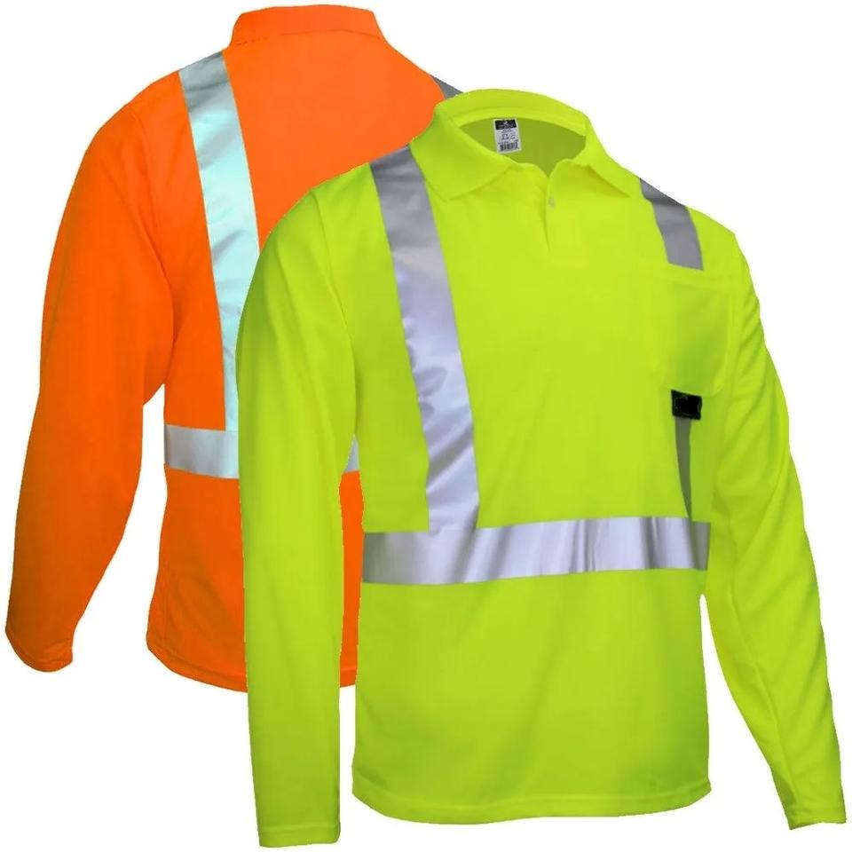เสื้อโปโลแขนยาวสะท้อนแสงแขนยาวสีเหลืองมีความปลอดภัยป้องกันไฟฟ้าสถิตย์ผ้าโพลีเอสเตอร์100% โรงงานบังคลาเทศ