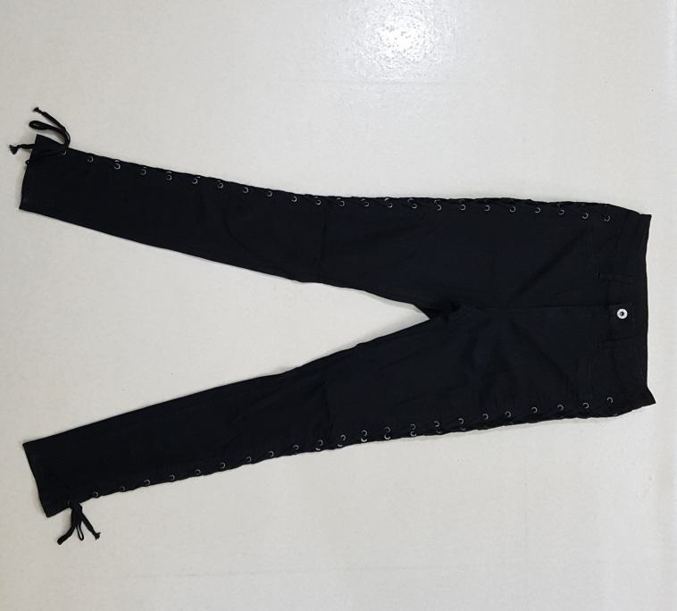 กางเกงยีนส์สีดำเอวสูงเซ็กซี่สำหรับผู้หญิง พร้อมเชือกผูกด้านข้าง ทรงสลิมฟิตแบบขาดๆ สินค้าล็อต/ยกชุดจากบังคลาเทศ (ยกเลิกการสั่งซื้อ)