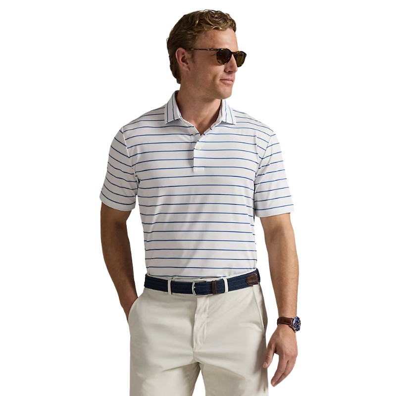 เสื้อโปโลผู้ชายสำหรับกีฬากอล์ฟ ผ้าโพลีเอสเตอร์ลายทาง ระบายอากาศได้ดี ปักโลโก้แบบมืออาชีพ คุณภาพสูงจากบังกลาเทศ