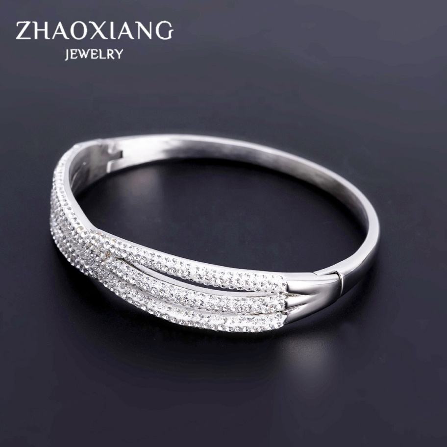 Bangles Bracelets for Women 3A+ Cubic Zirconia Paved Charms Jewellery Stainless Steel Wrist Bangles for Women