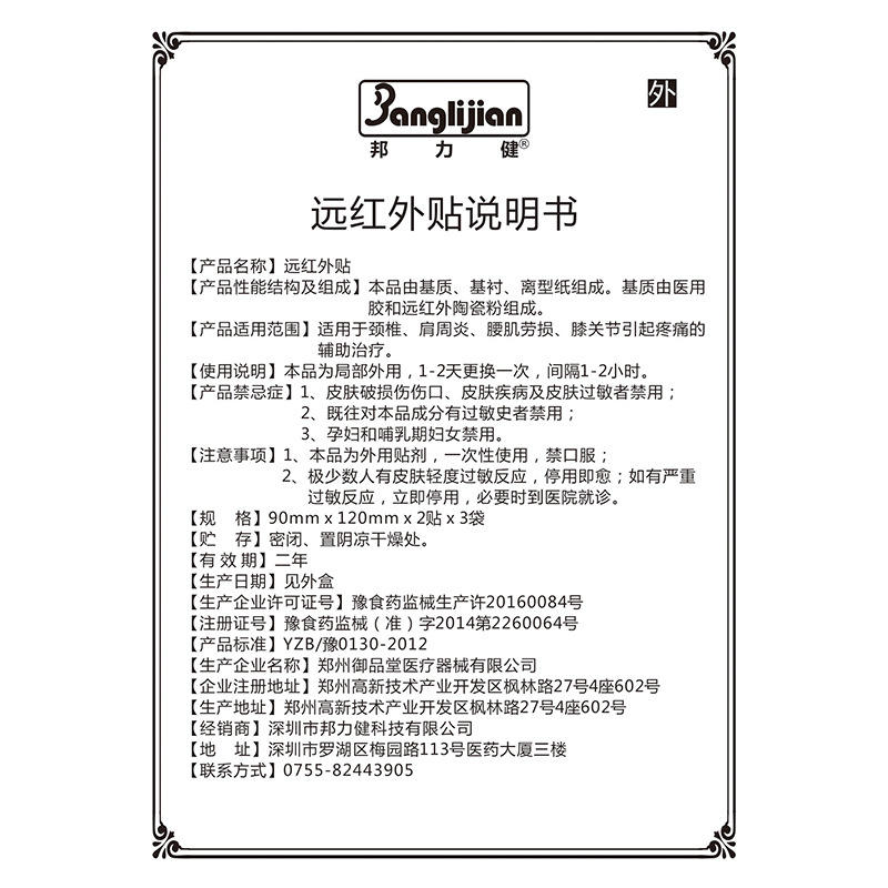 แผ่นแปะอินฟราเรดไกล บังลี่เจียน ขนาด 60 มม. x 70 มม. แพ็ค 10 ชิ้น สำหรับบรรเทาอาการปวดไหล่ เข่า กระดูกสันหลังส่วนคอ