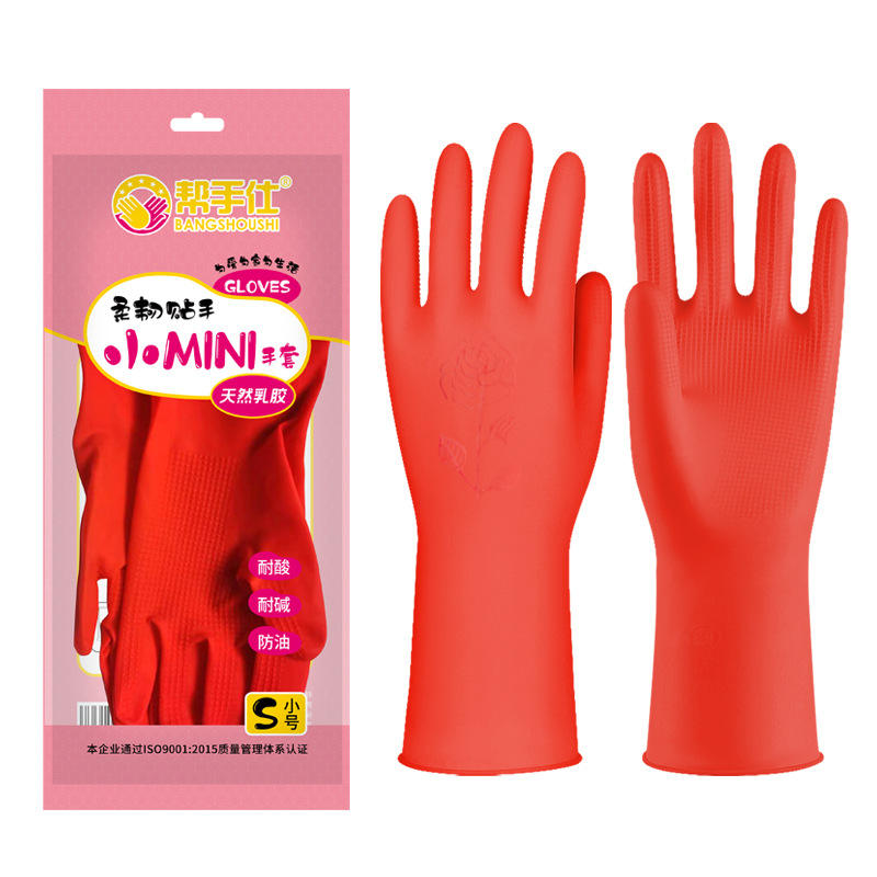 ถุงมือยางลาเท็กซ์ขนาดเล็ก บังโชชิ ไซส์ S กันน้ำ สำหรับล้างจาน ทำความสะอาดครัวเรือน เนื้อสัมผัสเรียบเนียน