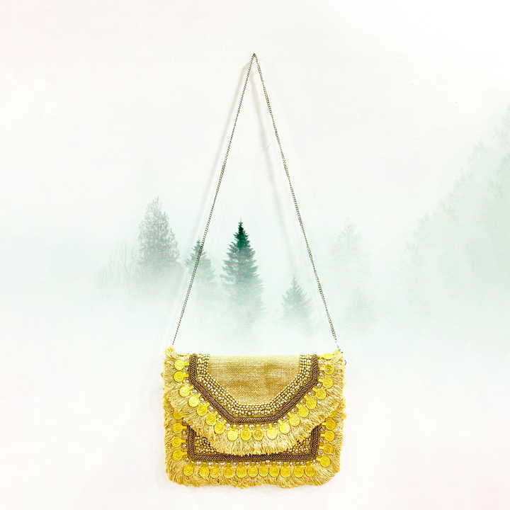 Banjara Boho Handcrafted Designer Casual Beach Bags for Ladies Beaded Stone Embroidery Artisan Clutch Envelope Shape Multi Color