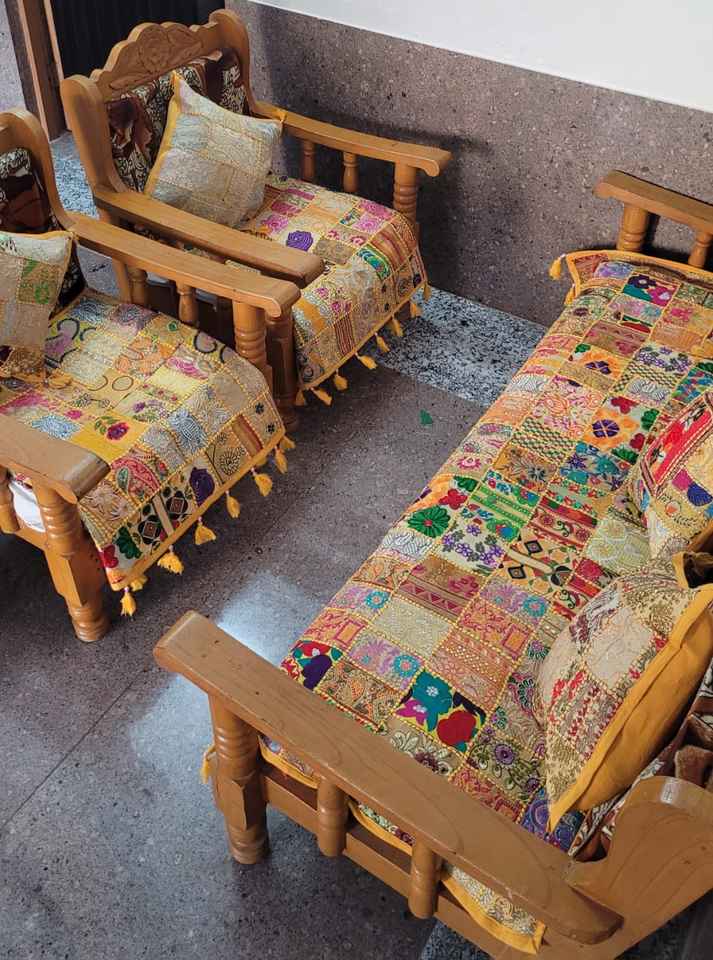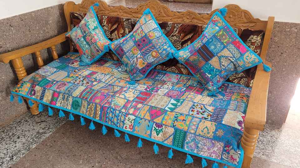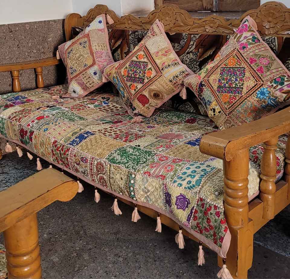 ผ้าคลุมโซฟาสไตล์โบฮีเมียนวินเทจลายปะติดแบบบันจารา พร้อมปลอกหมอน 5 ใบ ชุดผ้าคลุมโซฟาลายบันจารา ผ้าคลุมโซฟาวินเทจ