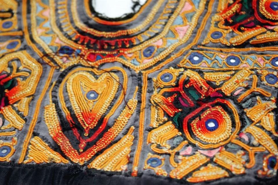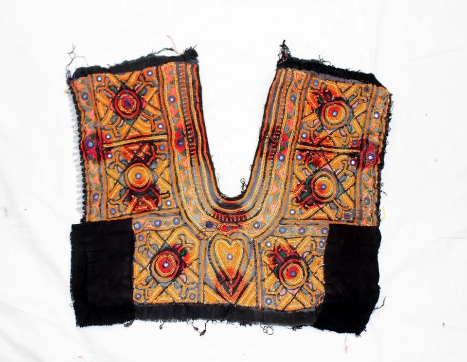 Banjara Vintage Yoke Embroidered Patches Kutchi Neck Embroidery with Rhinestone Flower Shape for Clothes for Fabric