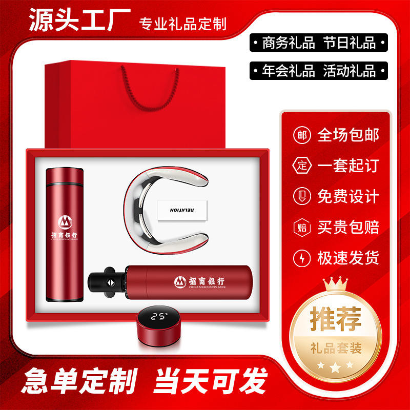 ชุดของขวัญธุรกิจธนาคารแห่งประเทศจีน เครื่องนวดคอ ร่ม ขวดน้ำ ของขวัญพรีเมียมพร้อมโลโก้สั่งทำพิเศษ