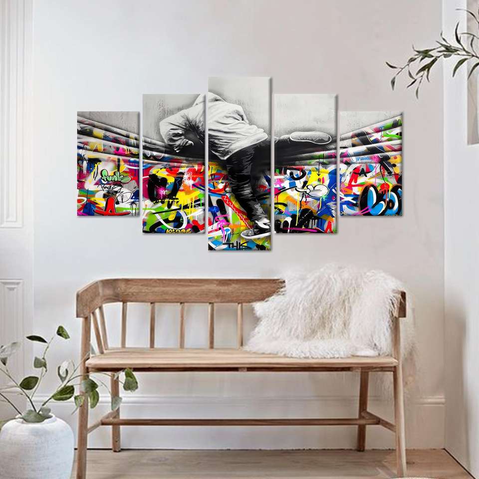 ศิลปะกราฟฟิตีเด็กชายของแบงก์ซี่: ภาพพิมพ์บนผ้าใบที่มีเสน่ห์แบบเมือง ชุดผ้าใบขนาด 5 ตารางเมตร