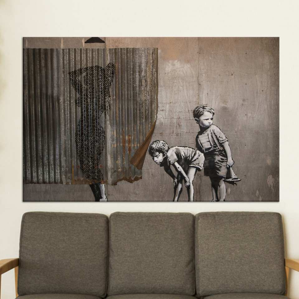 ภาพพิมพ์บนผ้าใบลายกราฟฟิตีบนผนังของแบงก์ซี่ บอยส์, ภาพพิมพ์บนผ้าใบหุ้ม