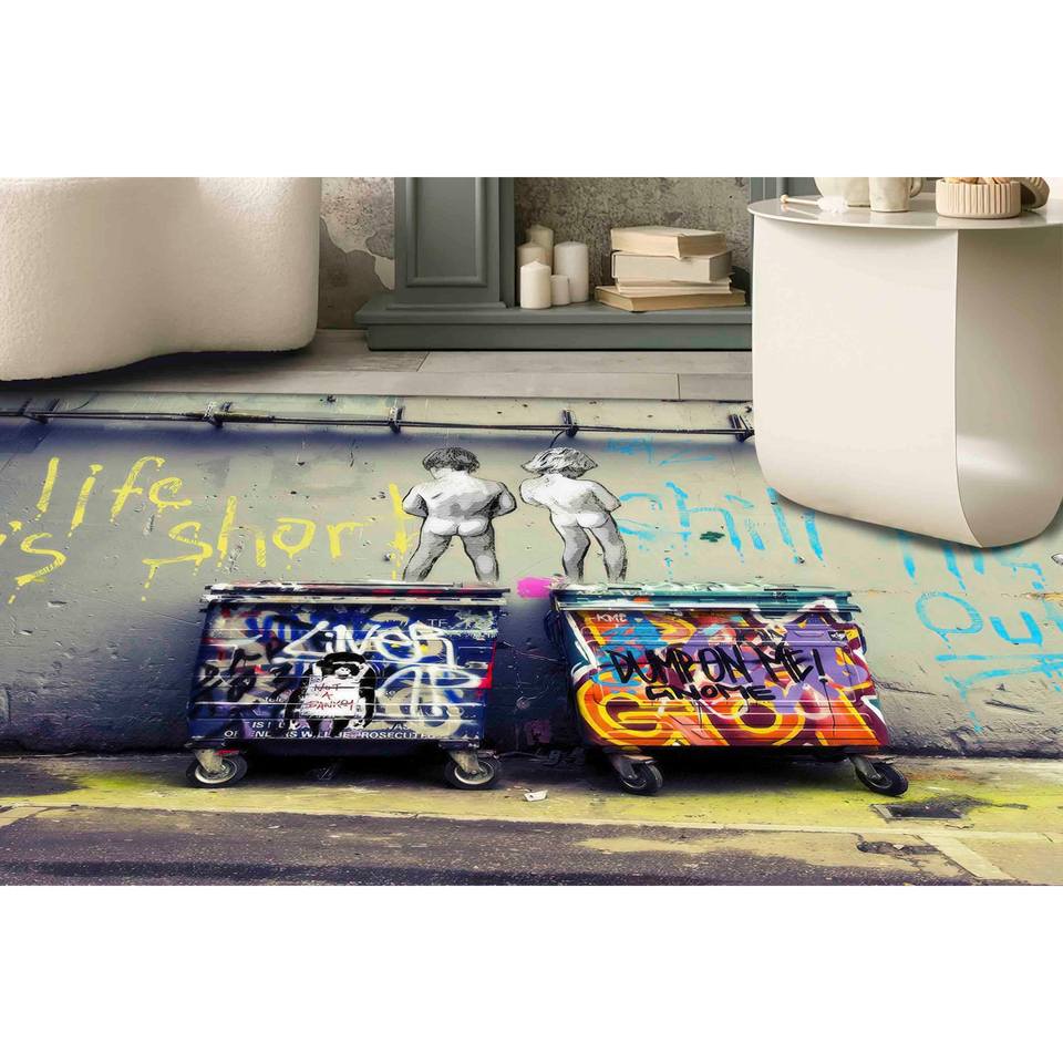 พรมลายกราฟฟิตีของแบงก์ซี่: ลาย "ชีวิตนั้นสั้น" - พรมกันลื่นสำหรับใช้ในบ้าน พร้อมพรมขนนุ่ม