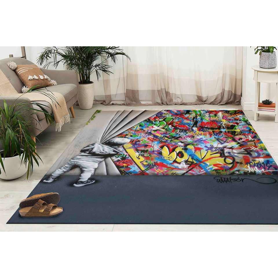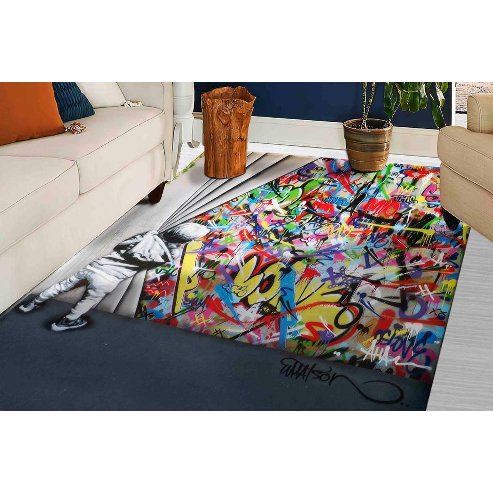 พรมลายกราฟฟิตีของแบงก์ซี่: พรมลายศิลปะแนวสตรีท, พรมพิมพ์ลาย, พรมเชนิลล์