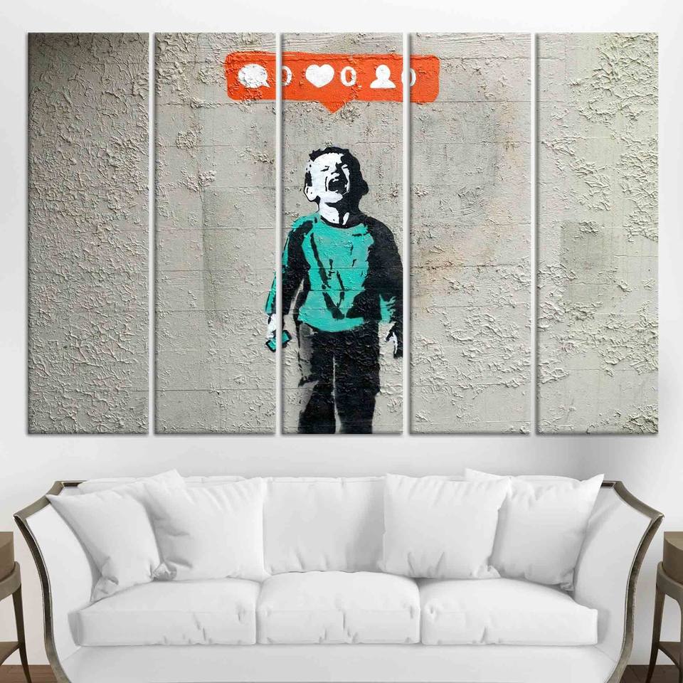 ภาพพิมพ์บนผ้าใบ "Banksy Nobody Like Me": ภาพพิมพ์ศิลปะกราฟฟิตีสมัยใหม่ ชุดผ้าใบ 5 ชิ้น